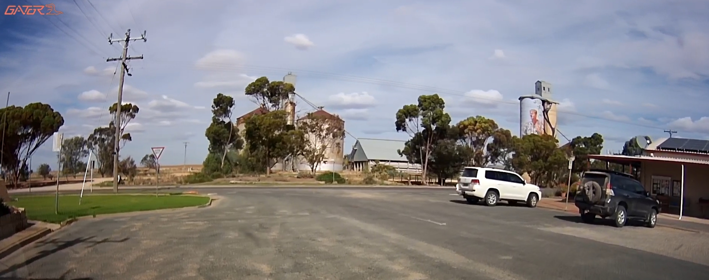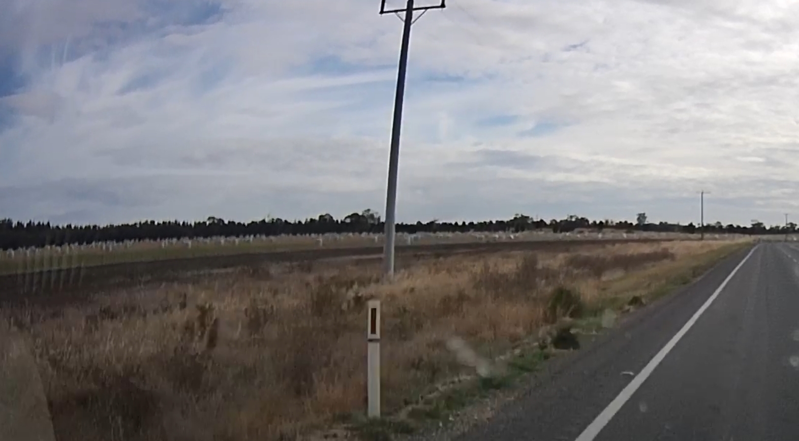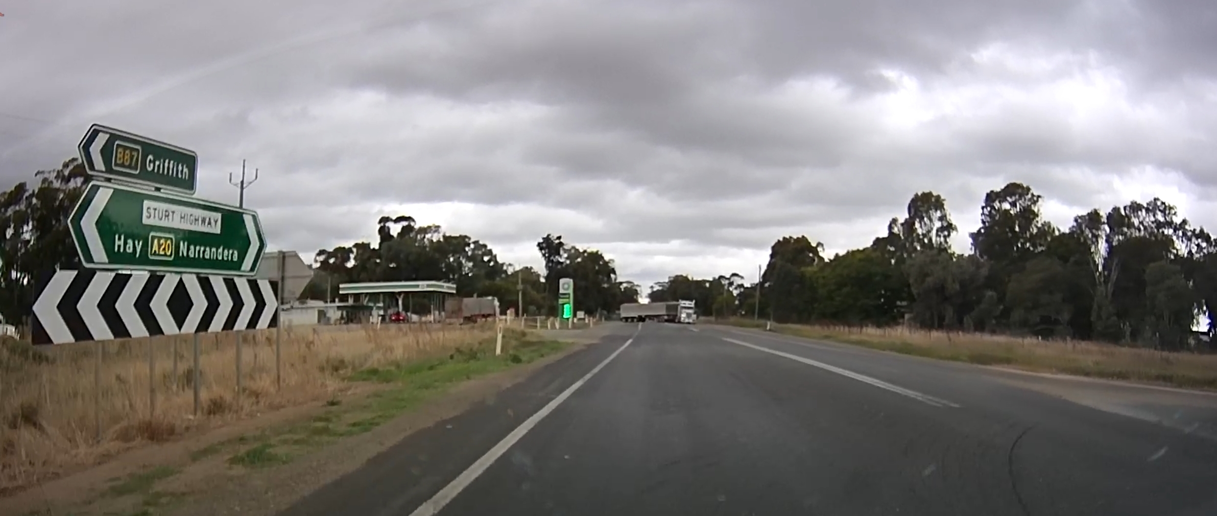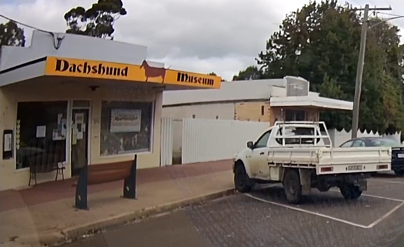 That’s a silo in the distance! There were a few roadworks along the way! A square hole in that cloud. One of many oversize loads/vehicles. Gum trees stretching for miles. An avenue of trees on the way to Edenhope. Metal sculpture on the outskirts of Kaniva. Dachshund Museum in Edenhope. Dimboola – entrance to Little Desert. The road goes on for miles and miles. One of many forks in the road. Hay bales in the paddock next to the road – lots of them! Patchewollock silo in the distance. Welcome to Rainbow! What crop is that? Lake Tyrrell. What crop is this? Back in NSW – more patch than road? Water at the side of the road from recent flooding. More road! Metal emu sculptures … somewhere! Giraffe at entrance to Altina Wildlife – near Narrandera. Fairly large truck! One of the two motorcycle groups we saw.